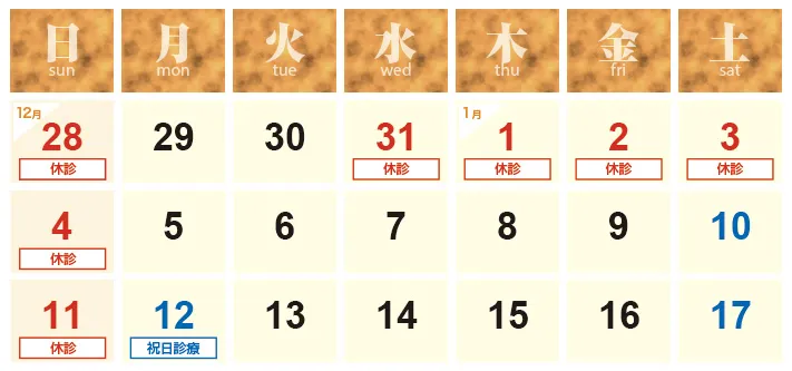 誠に勝手ながら2025年年末から2026年年始の間、当院では下記のとおりの診療とさせていただきます。